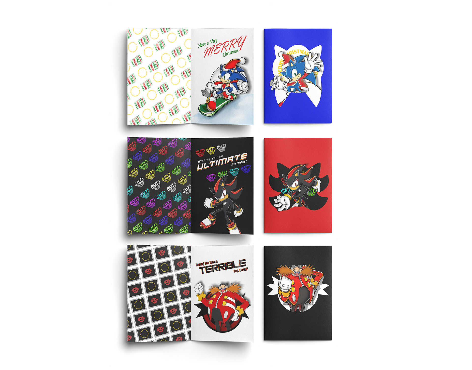 Based on the classic gaming icon "Sonic the Hedgehog", these greeting cards come complete with custom matching envelopes and authentic character art from the early 2000s.